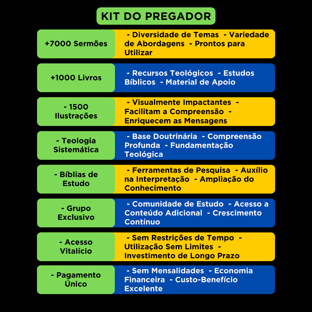 Sim, nosso kit inclui acesso a mais de 1000 livros, cobrindo uma ampla gama de tópicos teológicos e práticos, fornecendo uma base sólida para o seu desenvolvimento espiritual e ministério.